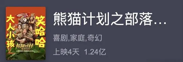 这部片子可是今年春节档里唯一以熊猫为主角的真人家庭喜剧啊,汇聚了成龙、马丽、乔杉、于洋等一帮喜剧演员。它通过一场奇幻冒险,传递亲情、表达家庭和解的温暖心意,到目前为止,票房已经突破了1.2亿。